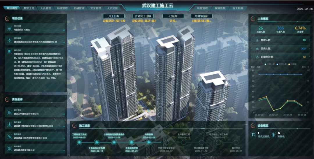二是拓展應(yīng)用場(chǎng)景。2024年公布武漢市智能建造關(guān)鍵適用技術(shù)產(chǎn)品(第一批)35項(xiàng),5G塔吊、智能電梯、建筑機(jī)器人等多類智能建造設(shè)備在漢廣泛應(yīng)用。光谷國(guó)際社區(qū)項(xiàng)目應(yīng)用空中造樓機(jī)、無人值守施工升降機(jī)等先進(jìn)設(shè)備和關(guān)鍵技術(shù),通過智能安全帽、慧眼AI、高支模及卸料平臺(tái)監(jiān)測(cè)等手段,助力現(xiàn)場(chǎng)安全管理實(shí)現(xiàn)可視化、智能化。在技術(shù)復(fù)雜項(xiàng)目方面,甘露山雪世界項(xiàng)目設(shè)計(jì)、施工、運(yùn)維階段均應(yīng)用BIM技術(shù),成功部署場(chǎng)地布置、雪道層策劃、鋼結(jié)構(gòu)方案模擬等35項(xiàng)應(yīng)用點(diǎn),顯著提高施工精度與效率。在橋梁市政工程方面,中交二航局雙柳大橋等6個(gè)項(xiàng)目利用智能筑塔機(jī),打造“豎向移動(dòng)工廠”,大幅提高了施工工效。在智慧監(jiān)管運(yùn)維方面,武漢市測(cè)繪研究院自主研制“城市智眼”低空遙感監(jiān)測(cè)體系,在武漢經(jīng)濟(jì)技術(shù)開發(fā)區(qū)開展“城市智眼+施工現(xiàn)場(chǎng)監(jiān)測(cè)”場(chǎng)景應(yīng)用,利用無人機(jī)常態(tài)化監(jiān)控施工現(xiàn)場(chǎng),實(shí)現(xiàn)安全隱患監(jiān)測(cè)、應(yīng)急響應(yīng)反饋、施工進(jìn)度監(jiān)控、環(huán)境保護(hù)監(jiān)督等方面動(dòng)態(tài)巡檢,提高了監(jiān)管的全面性和及時(shí)性,大幅降低了人力成本,為施工現(xiàn)場(chǎng)安全保駕護(hù)航。