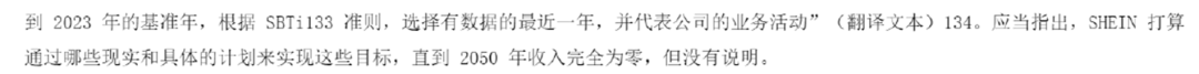 66段顯示,SHEIN未說明打算通過哪些現(xiàn)實(shí)的、具體的計(jì)劃來實(shí)現(xiàn)上述碳目標(biāo),即到2050年徹底消除溫室氣體。