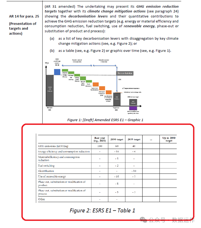 此外,ESRSDisclosure Requirement E1-6 – Targets related to climate change中的碳減排措施清單十分重要。