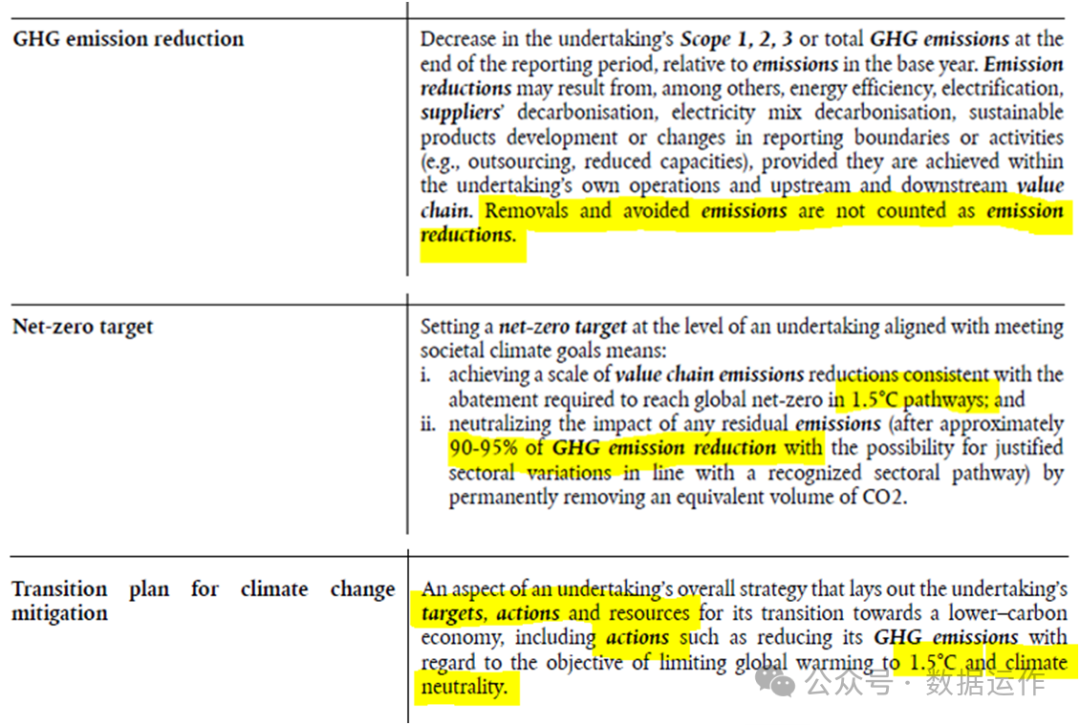 這段是關(guān)鍵,ESRS對于“凈零排放”的定義比SBTi更嚴(yán)格:(注意這個(gè)90-95%的比例,和“減排”的定義)