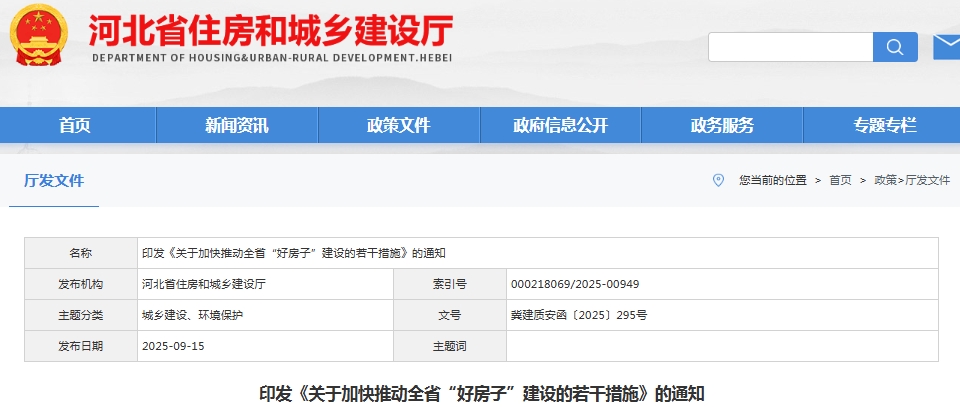 時(shí)間:2025-09-22 16:42:57 作者:GBWindows 來源:行業(yè)網(wǎng)站 閱讀:713內(nèi)容摘要:各市(含定州、辛集市)住房和城鄉(xiāng)建設(shè)局,雄安新區(qū)建設(shè)和交通管理局: 為深入貫徹落實(shí)黨中央、國務(wù)院決策部署和省委、省政府工作要求,加快建設(shè)安全、舒適、綠色、智慧的“好房子”,更好滿足人民群眾高品質(zhì)居住需求,我廳制定了《關(guān)于加快推動(dòng)全省“好房子”建設(shè)的若干措施》,請(qǐng)結(jié)合實(shí)際認(rèn)真組織實(shí)施。河北省住房和城...