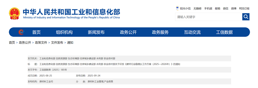 關(guān)于印發(fā)《建材行業(yè)穩(wěn)增長(zhǎng)工作方案(2025—2026年)》的通知