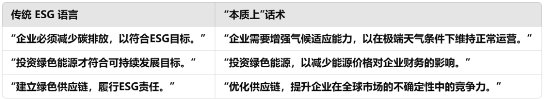 2.3 傳統(tǒng)ESG語言如何轉(zhuǎn)變?yōu)椤绊g性”話術(shù)?