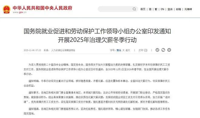人社部、住建部、央行等七部門聯(lián)合發(fā)布《2026年根治欠薪專項行動方案》,以更嚴舉措筑牢農(nóng)民工工資支付保障底線,打出“組合拳”。