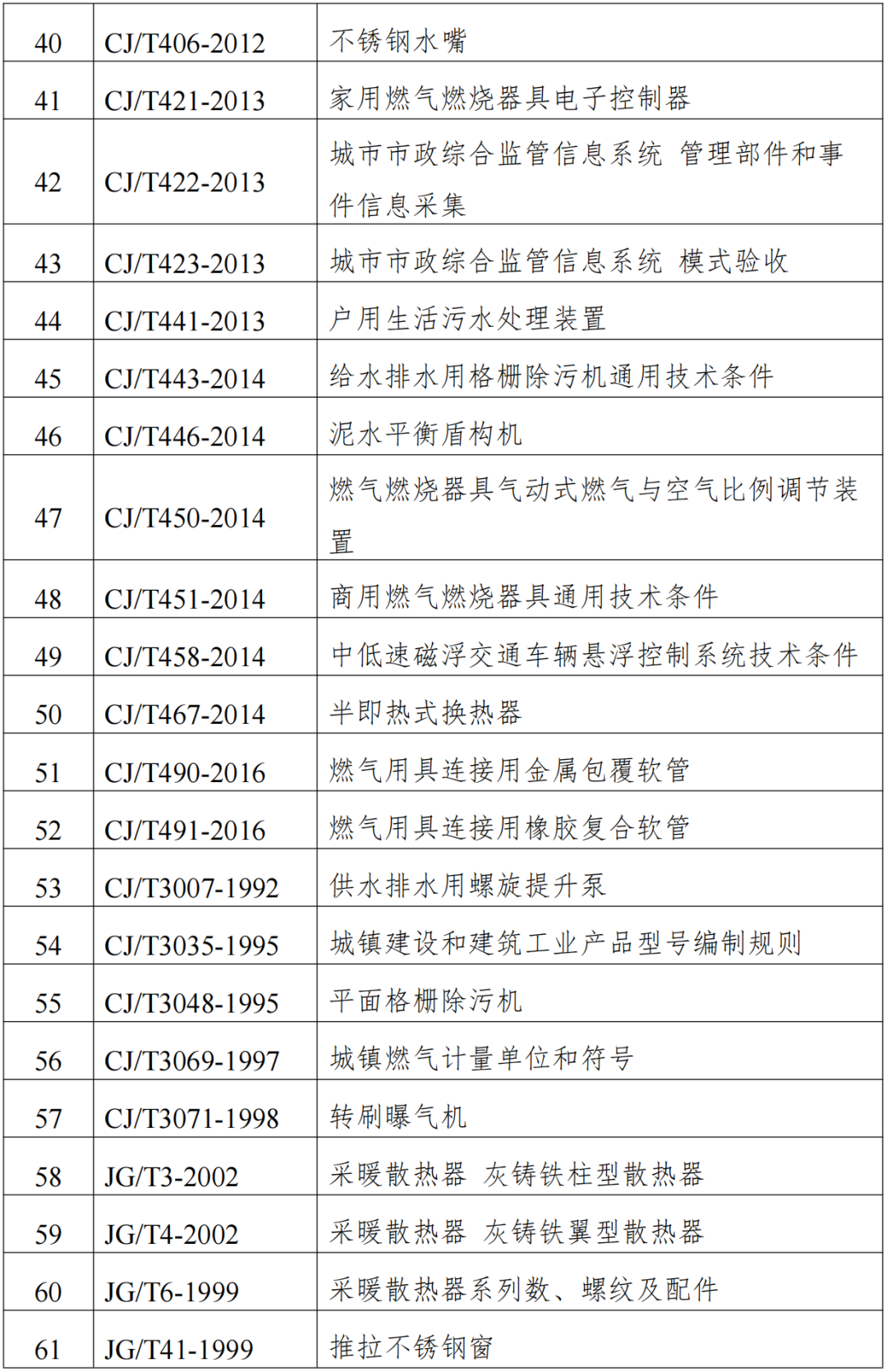 為持續(xù)優(yōu)化和完善工程建設(shè)標準體系,按照《中華人民共和國標準化法》、《工程建設(shè)國家標準管理辦法》、《工程建設(shè)行業(yè)標準管理辦法》有關(guān)規(guī)定,住房城鄉(xiāng)建設(shè)部對現(xiàn)行工程建設(shè)國家標準和行業(yè)標準進行了全面復(fù)審,決定廢止《鐵路線路設(shè)計規(guī)范》等72項現(xiàn)行標準(詳見附件)。本公告自公布之日起施行。