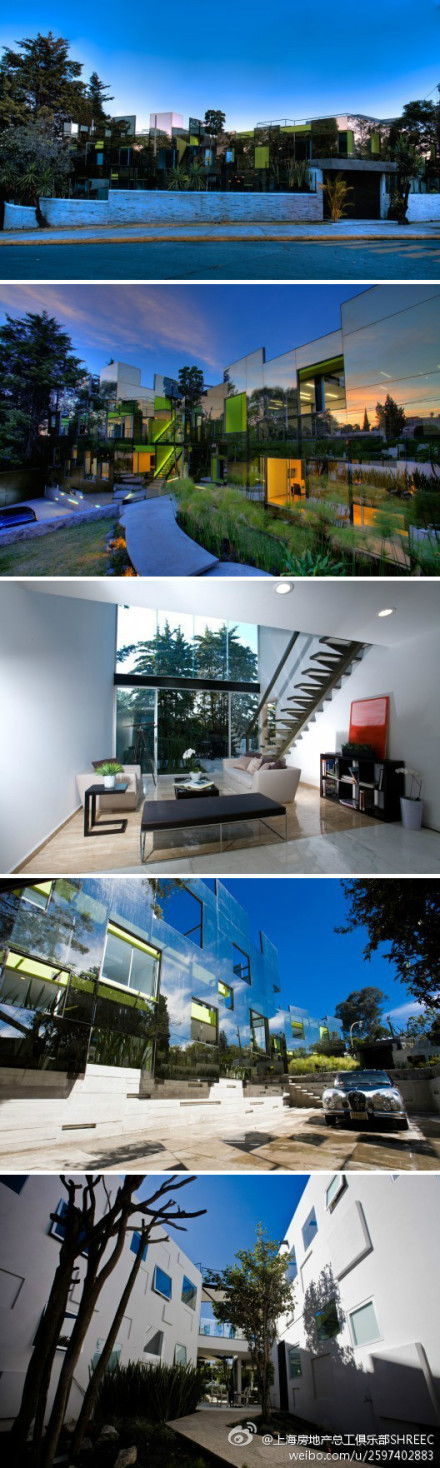 @上海房地產(chǎn)總工俱樂部SHREEC: 綠色建筑 這是個(gè)在40年前的老建筑上進(jìn)行改造和優(yōu)化的項(xiàng)目,設(shè)計(jì)師選擇兩種建筑外墻材料,向外的南墻選擇了青銅的反光玻璃,除了能保護(hù)建筑內(nèi)住戶的隱私之外,還可以過濾過剩的陽(yáng)光,玻璃有很顯著的隔音效果,在保證不損失屋內(nèi)風(fēng)景的同時(shí)。新增了內(nèi)部的天井花園,使整個(gè)建筑都能有更好地采光和通風(fēng)。