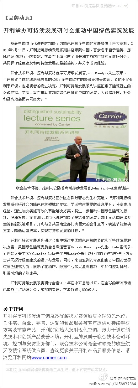 2.開利舉辦可持續(xù)發(fā)展研討會(huì)推動(dòng)中國(guó)綠色建筑發(fā)展