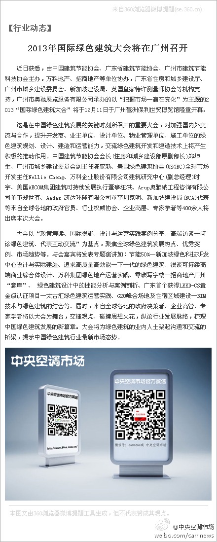 @中央空調(diào)市場: 2013年國際綠色建筑大會將在廣州召開 近日獲悉,由中國建筑節(jié)能協(xié)會、廣東省建筑節(jié)能協(xié)會、廣州市建筑節(jié)能科技協(xié)會主辦,萬科地產(chǎn)、招商地產(chǎn)等單位協(xié)辦,廣東省住房和城鄉(xiāng)建設(shè)廳、廣州市城鄉(xiāng)建設(shè)委員會、新灼陸ㄉ杈幀⒂⒐皇家特許測量師協(xié)會等機構(gòu) ……