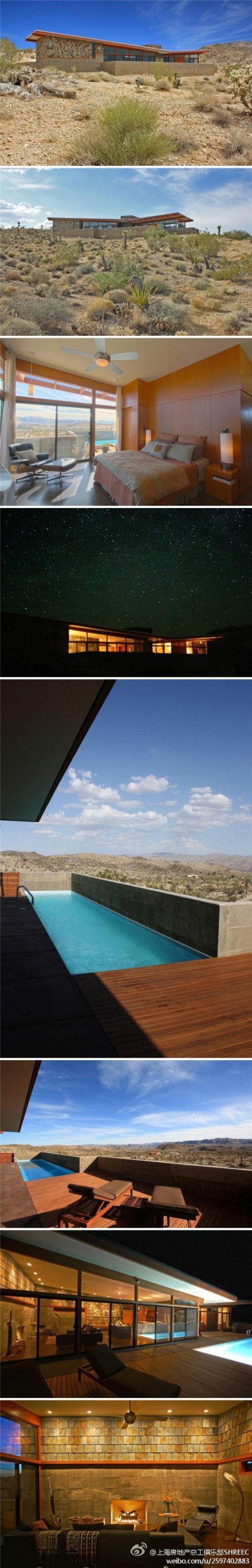 @上海房地產(chǎn)總工俱樂部SHREEC:綠色建筑 Jackrabbit Wash沙漠住宅:位于美國加利福尼亞約書亞樹附近的莫哈韋沙漠。住宅自身帶有太陽能系統(tǒng)設(shè)計,可全年為用戶提供采暖、制冷與生活用水。住宅的外墻采用顏色近似的石塊建祝外型幾何造型。裝飾部分主要使用木材和玻璃,家具和飾物也偏中性。室外的迷你游泳池則是極佳的消暑之地。