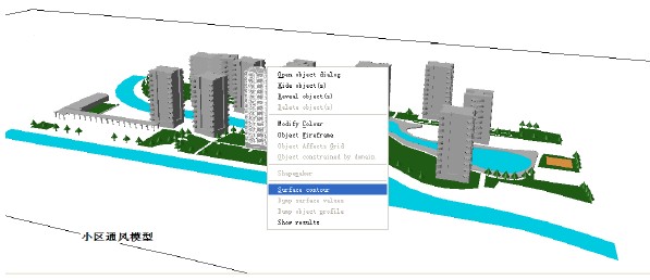 選中小區(qū)中某一建筑物單體,右鍵選擇surface Contour 如下圖所示操作